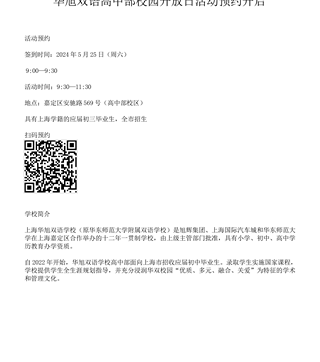 华旭双语高中部校园开放日活动预约开启VIP专免