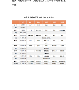 青溪·青村联合中学(青村校区)2025学年晒课表(七年级)